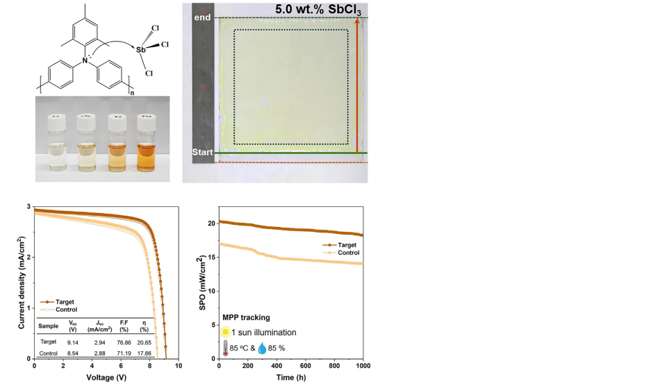 | 309 | Chemical oxidization of PTAA enables stable slot-die-coated perovskite solar modules 2D materials and additives: a dual approach to highperformance tin perovskite solar cells |